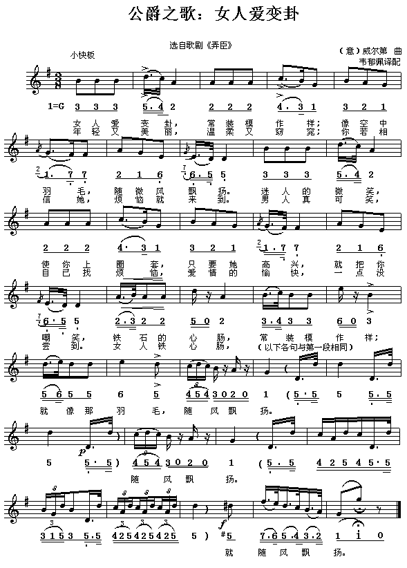 女人爱变卦(歌剧《弄臣》选曲)[简谱]