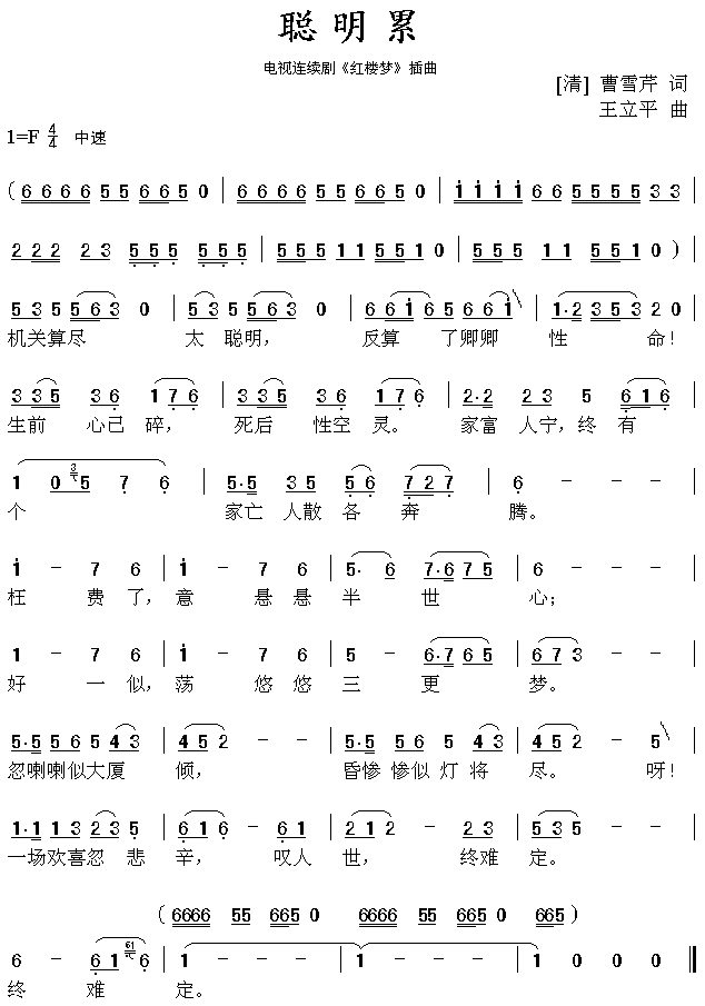 聪明累 《红楼梦》插曲[简谱]