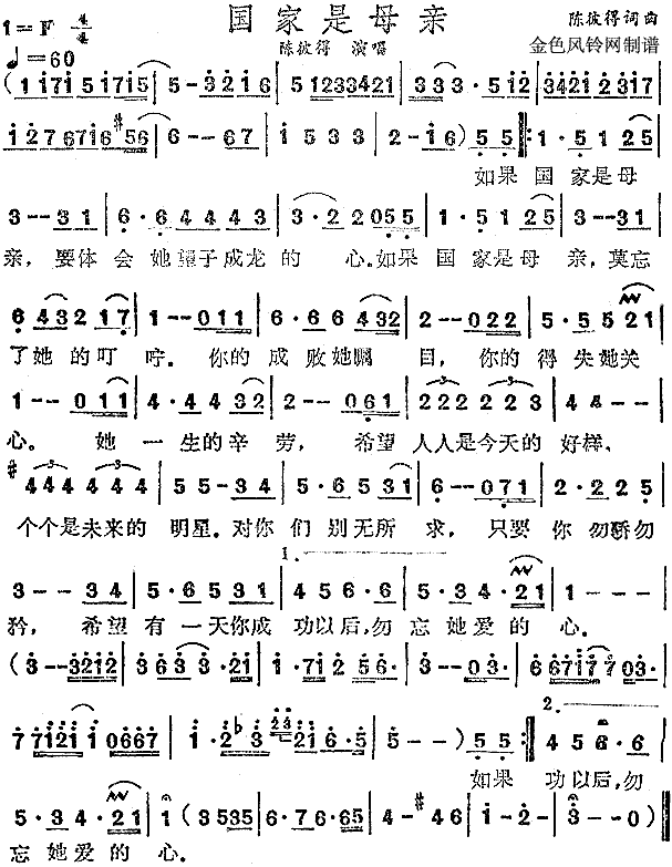 国家是母亲[简谱]