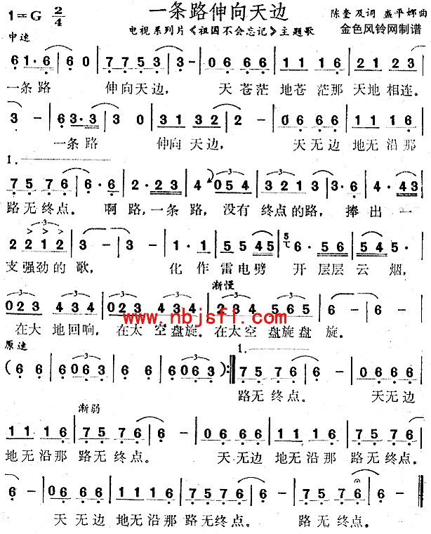 一条路伸向天边(《祖国不会忘记》主题歌)[简谱]