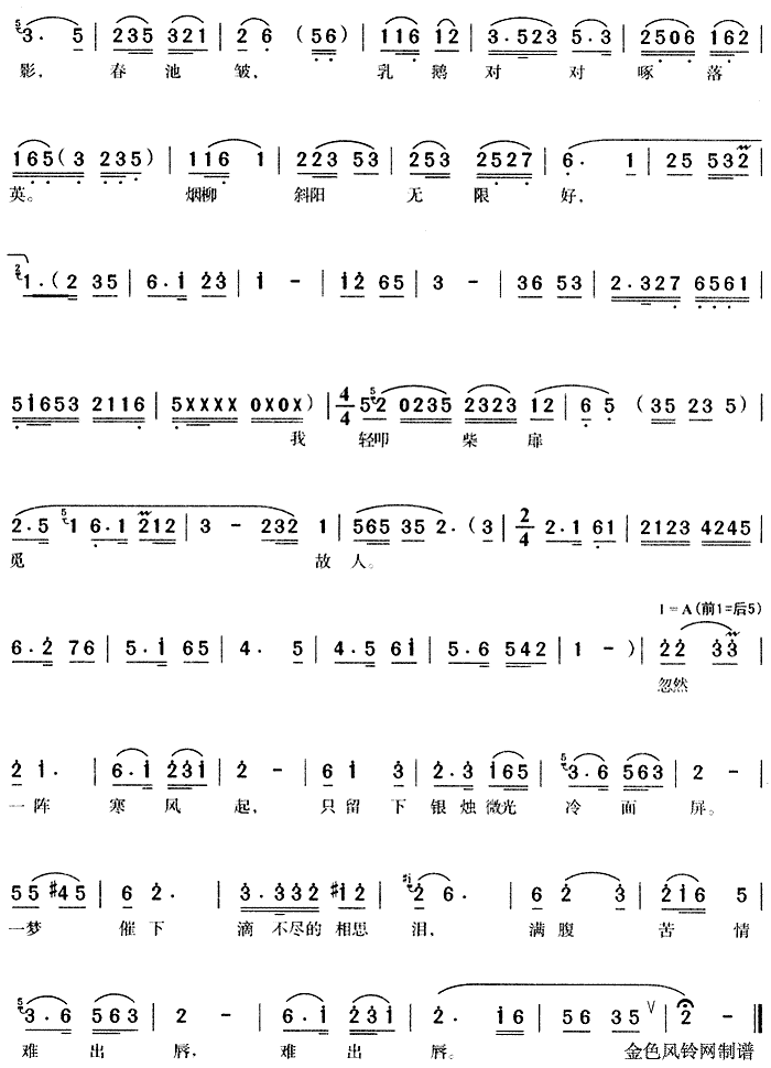 适才做了一个甜滋滋的梦《喜脉案》[戏曲曲谱]