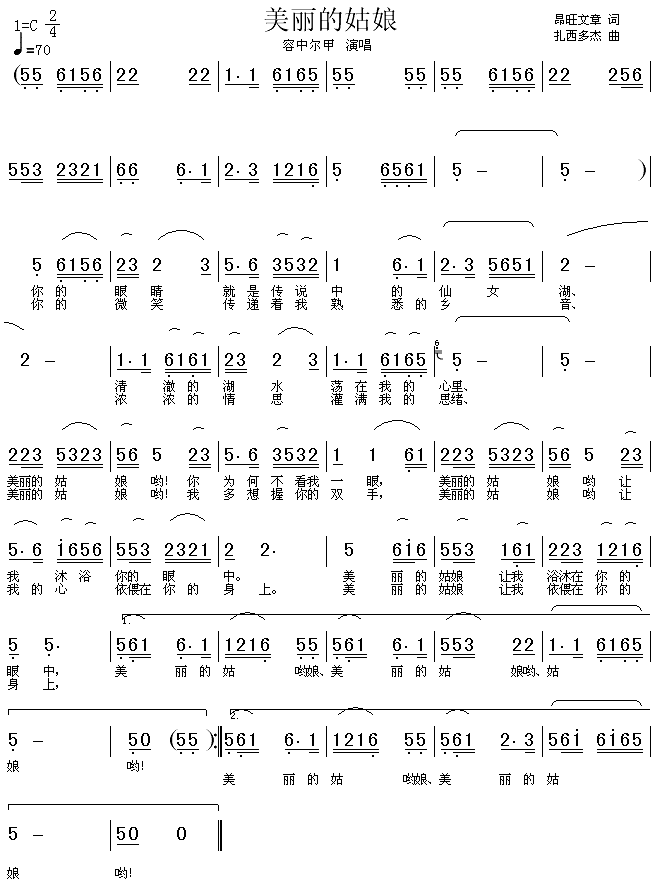美丽的姑娘[简谱]