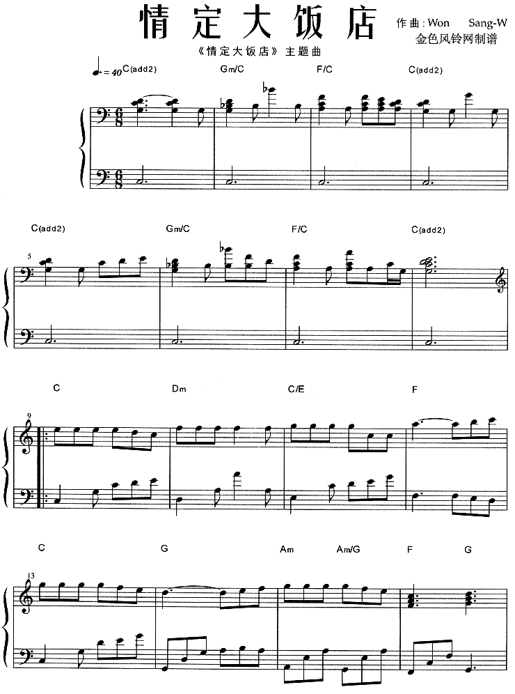 情定大饭店(同名韩剧主题曲)[钢琴曲谱]