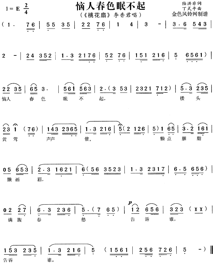 恼人春色眠不起《桃花扇》[戏曲曲谱]