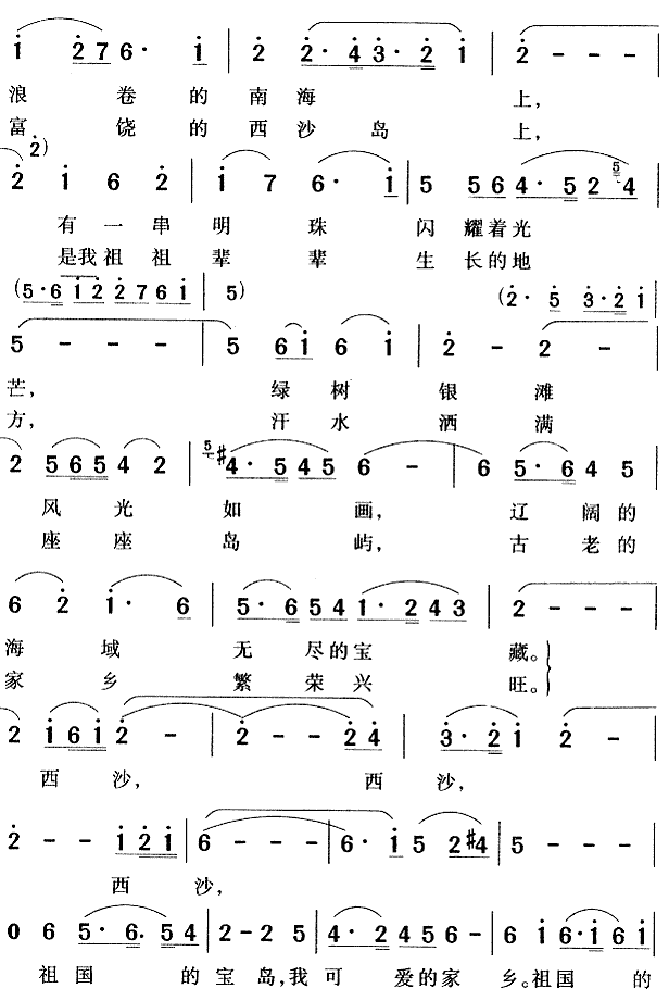 西沙可爱的家乡(《南海风云》插曲)[简谱]