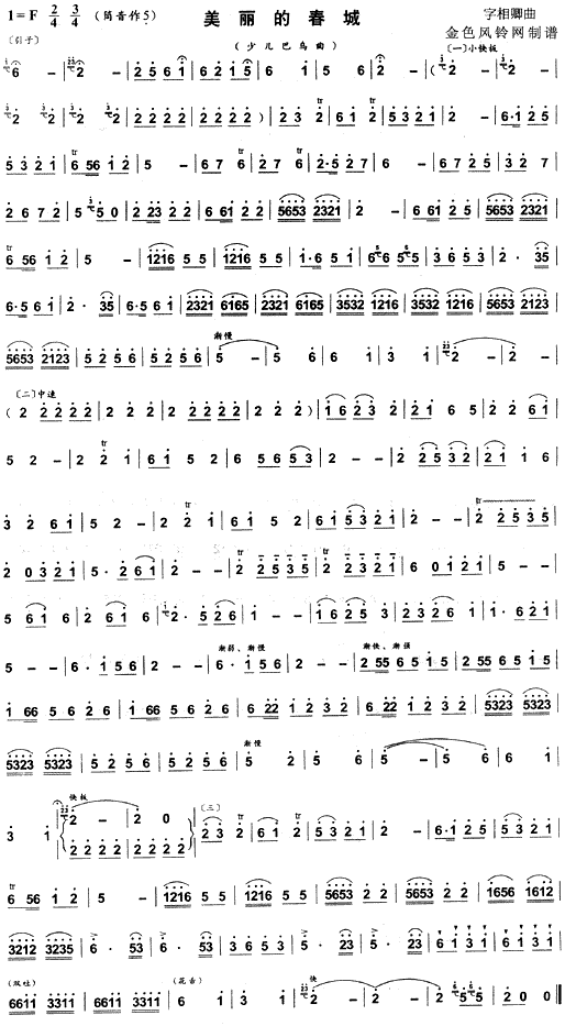 美丽的春城(巴乌谱)[笛萧曲谱]
