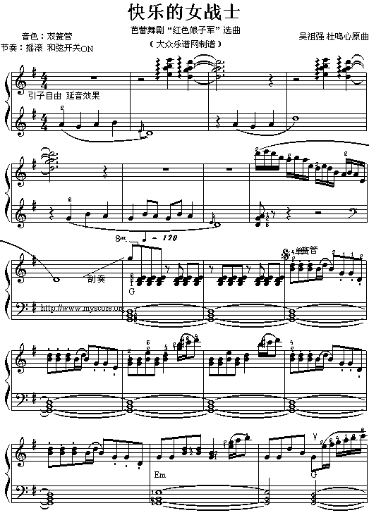 快乐的女战士(《红色娘子军》选曲)[电子琴谱]