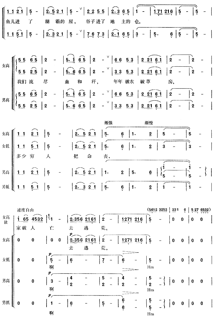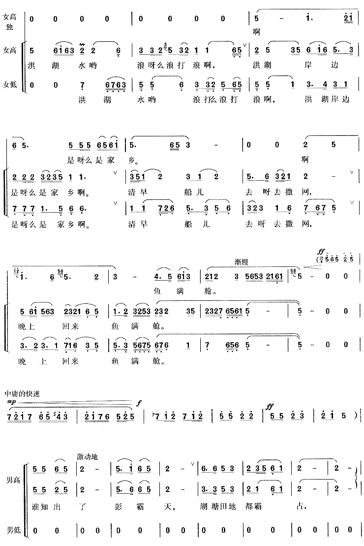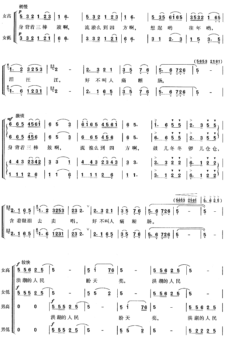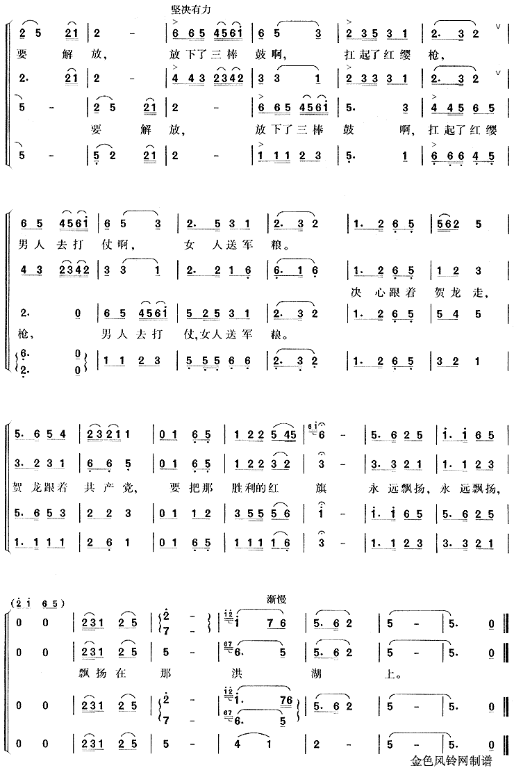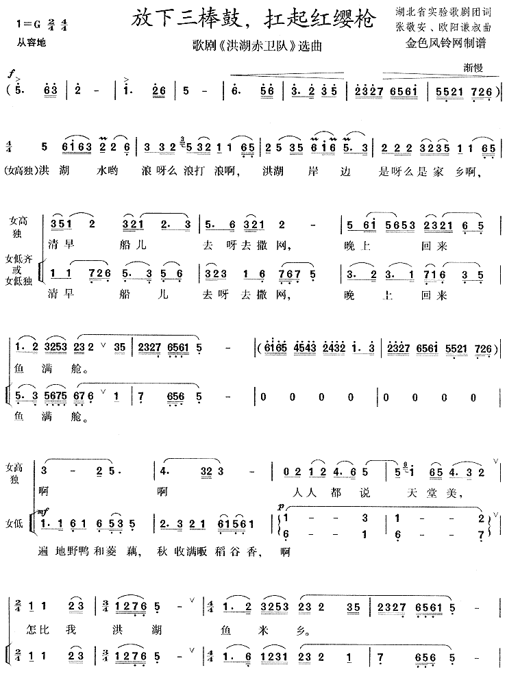 放下三棒鼓扛起红缨枪(《洪湖赤卫队》选曲)[合唱曲谱]