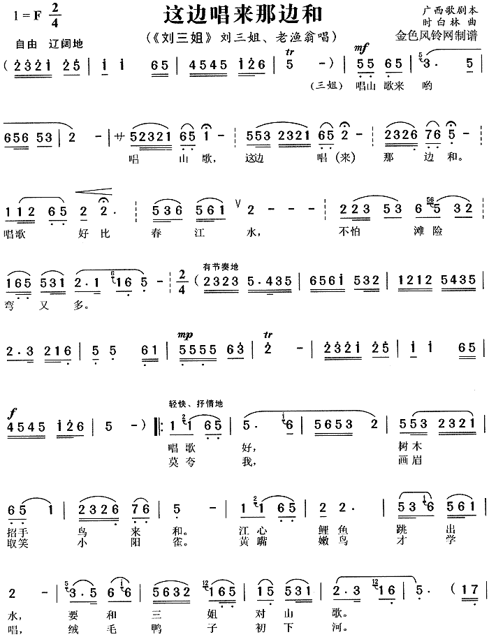 这边唱来那边和《刘三姐》[戏曲曲谱]