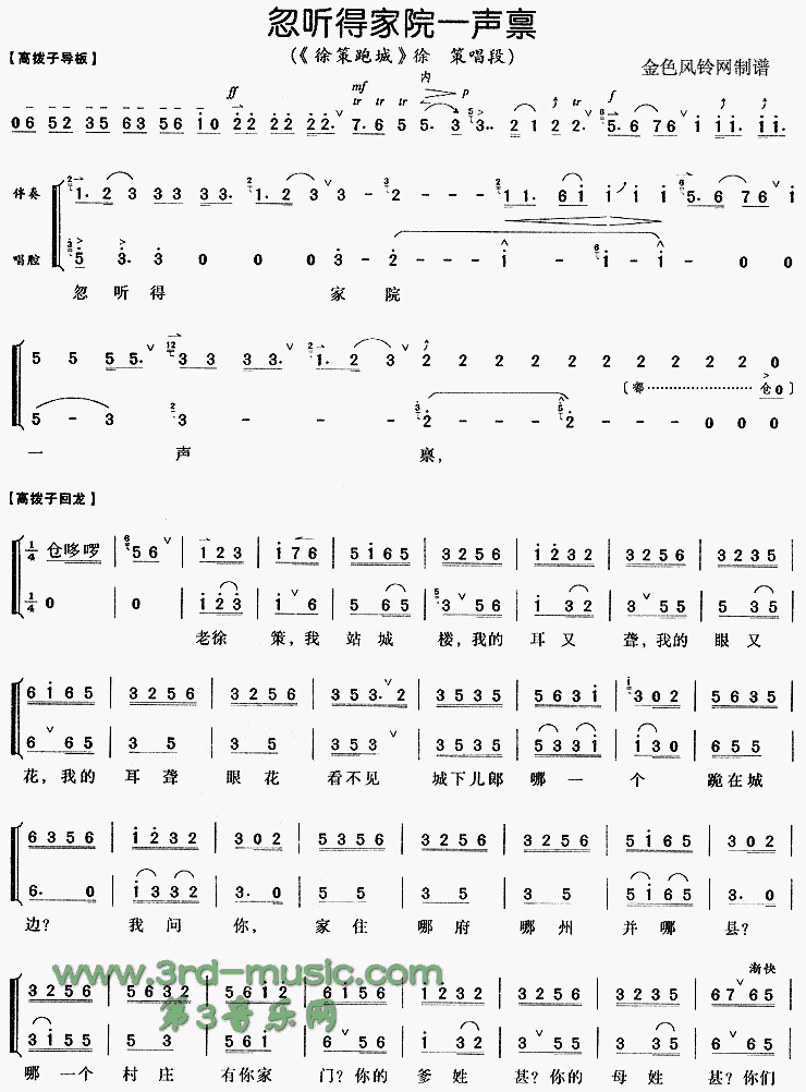 忽听得家院一声禀《徐策跑城》[戏曲曲谱]