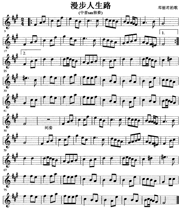 漫步人生路[萨克斯谱]