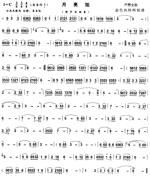 月亮姐(葫芦丝谱)[笛萧曲谱]