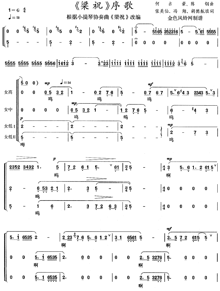梁祝序歌(根据小提琴协奏曲《梁祝》改编)[合唱曲谱]
