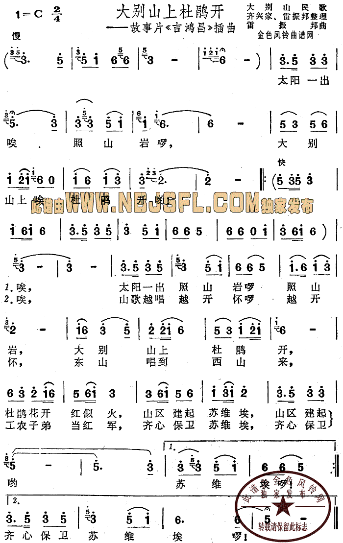 大别山上杜鹃开(《吉鸿昌》插曲)
