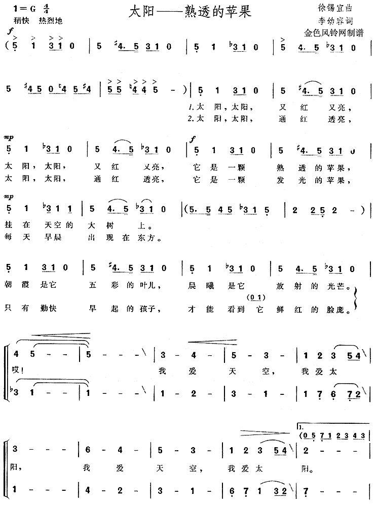 太阳——熟透的苹果(童声合唱《天上果园》套曲)[合唱曲谱]