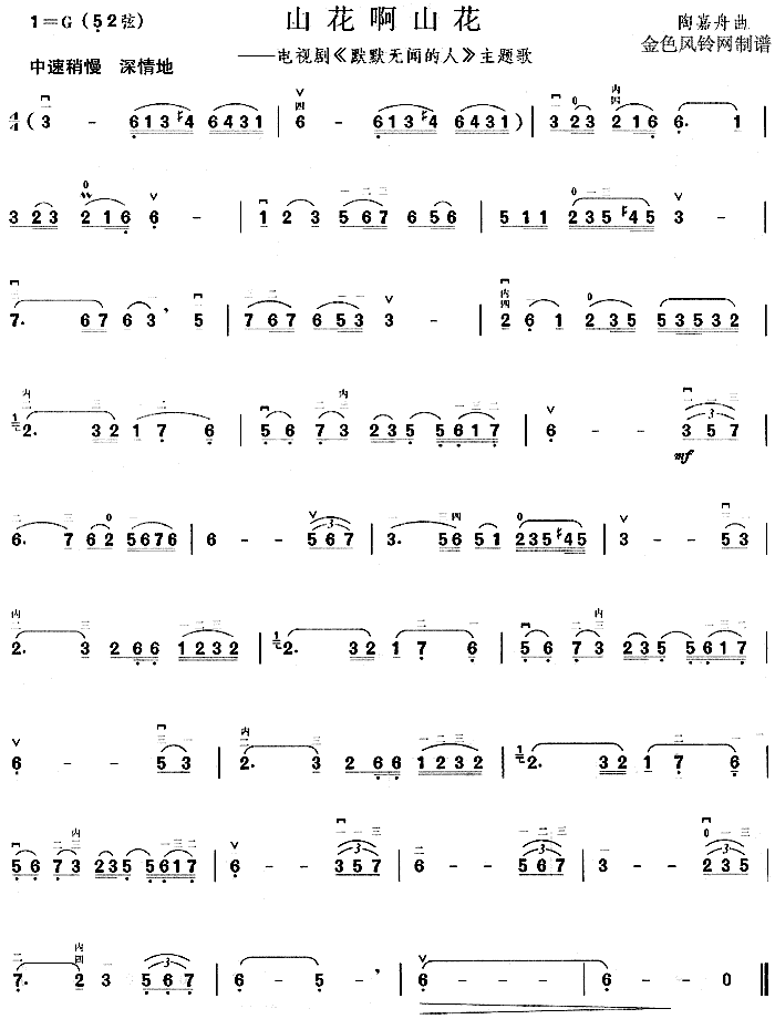 山花啊山花(《默默无闻的人》主题歌)[二胡曲谱]