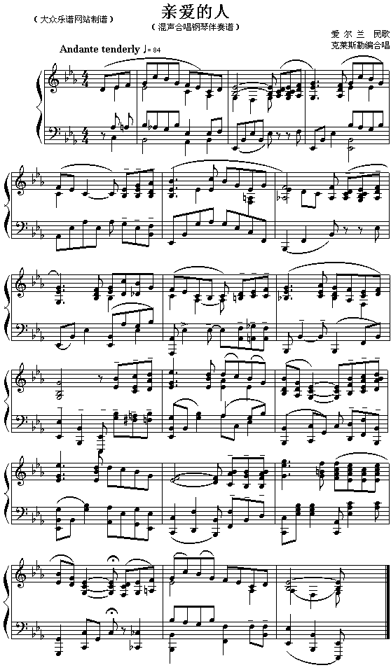 亲爱的人(爱尔兰民歌)[钢琴曲谱]