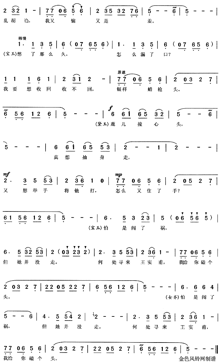 鹿儿撞心头《红楼梦》[戏曲曲谱]