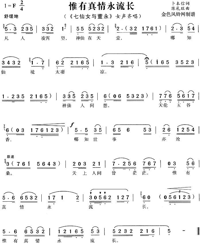 惟有真情永流长《七仙女与董永》[戏曲曲谱]