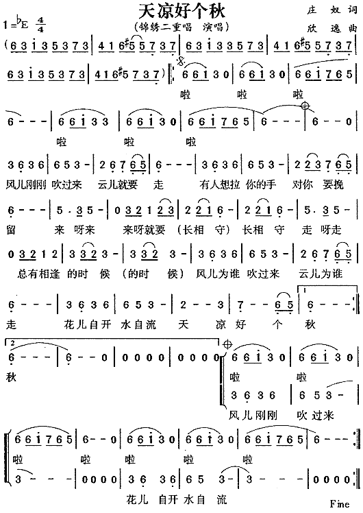 天凉好个秋[简谱]