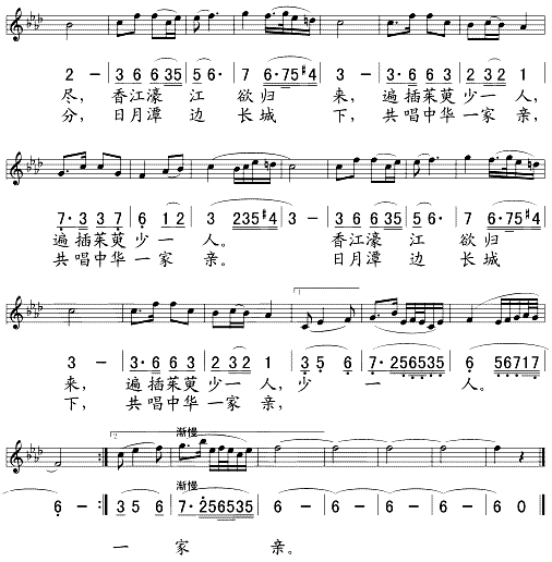 祖国是我永远的家(五线谱/简谱对照)