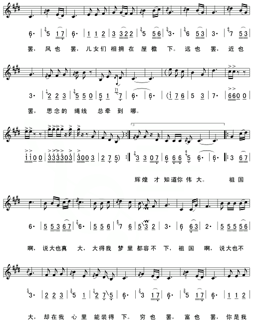 情深意长(《东方红》选曲、葫芦丝谱)[笛萧曲谱]