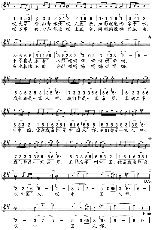我们都是一家人(五线谱/简谱对照)