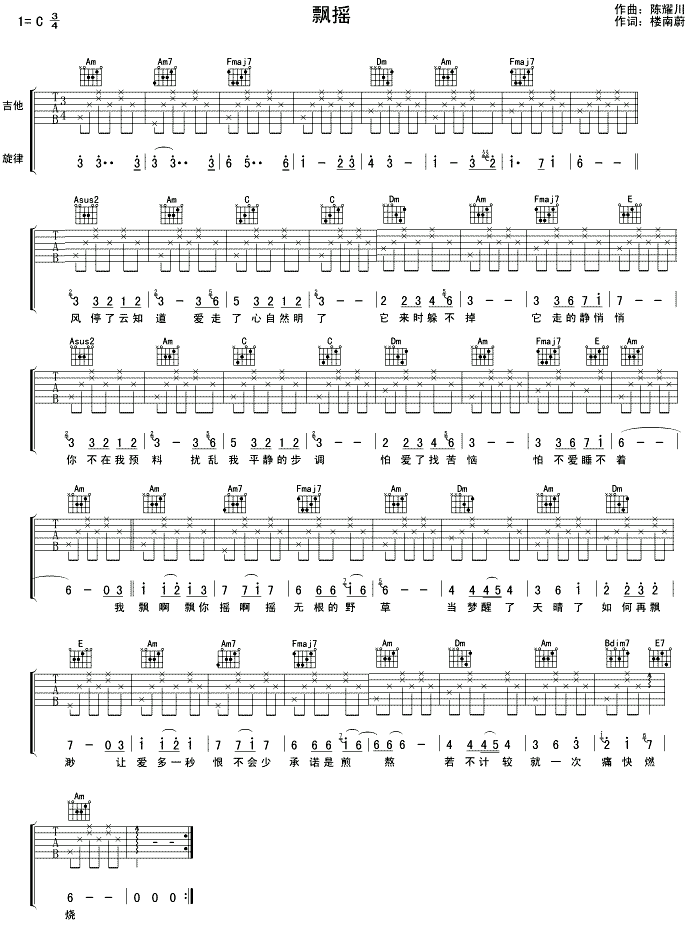 飘摇[简谱]