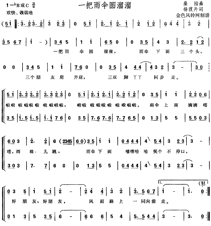 一把雨伞圆溜溜(儿童歌)[合唱曲谱]
