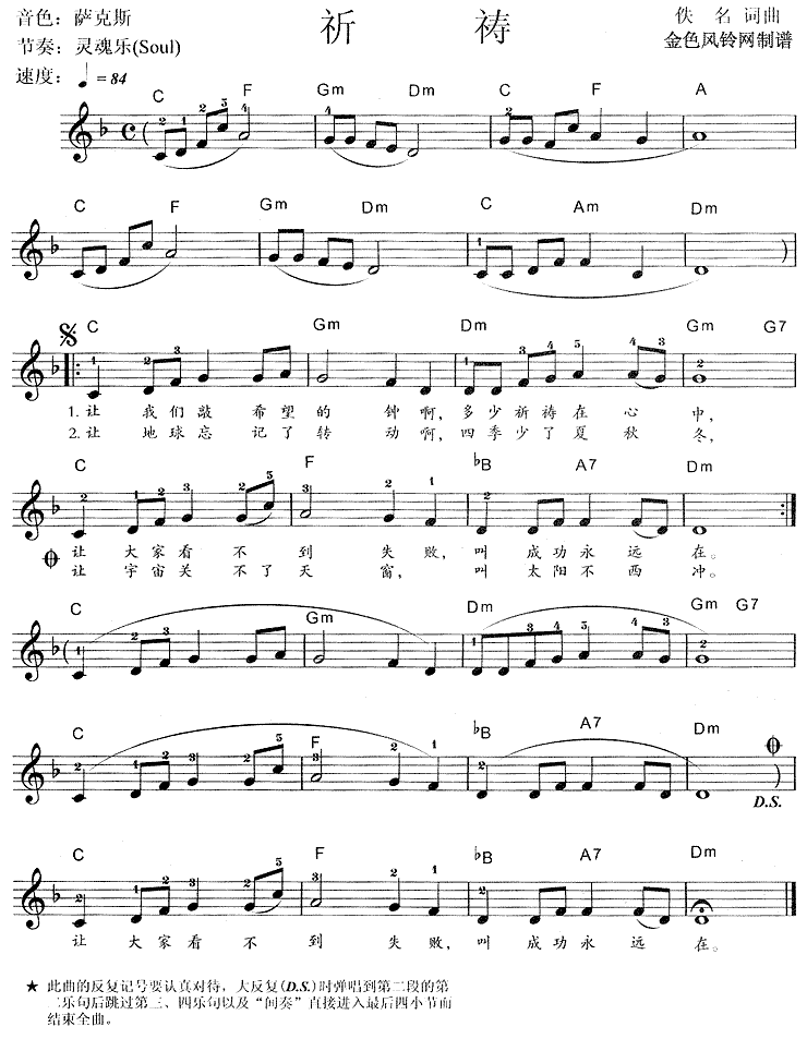 祈祷[电子琴谱]