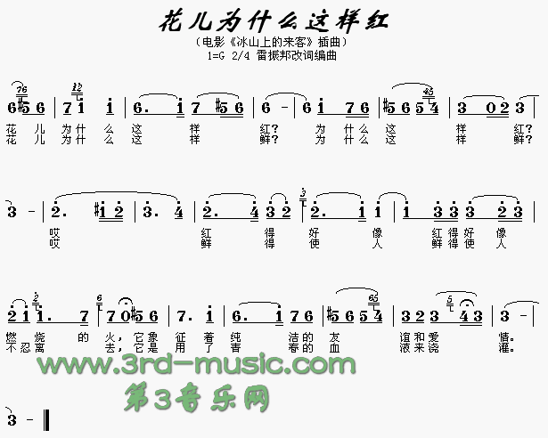 花儿为什么这样红(《冰山上的来客》插曲)[简谱]