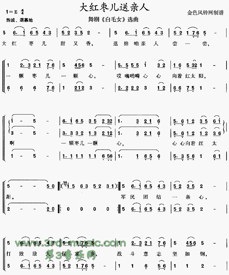 大红枣儿送亲人(《白毛女》选曲)[合唱曲谱]