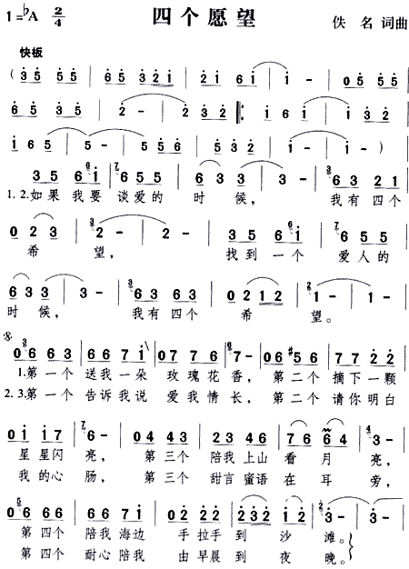 四个愿望[简谱]
