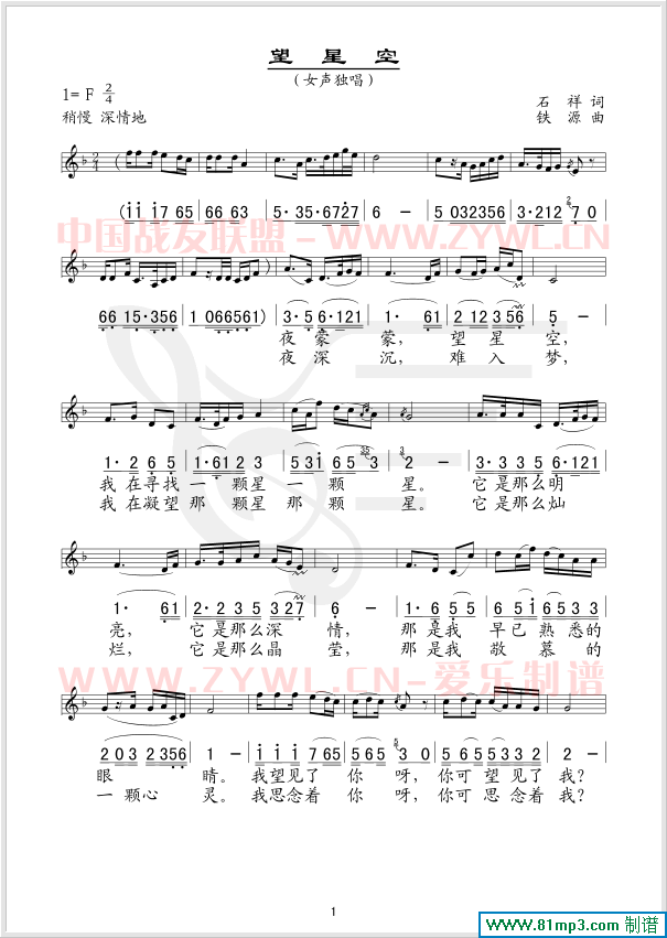 望星空(五线谱/简谱对照)