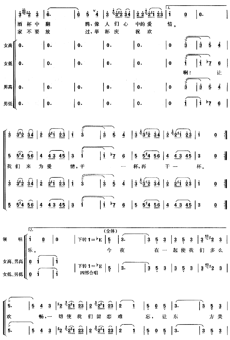 饮酒歌(《茶花女》选曲)[合唱曲谱]
