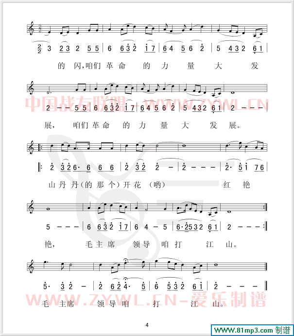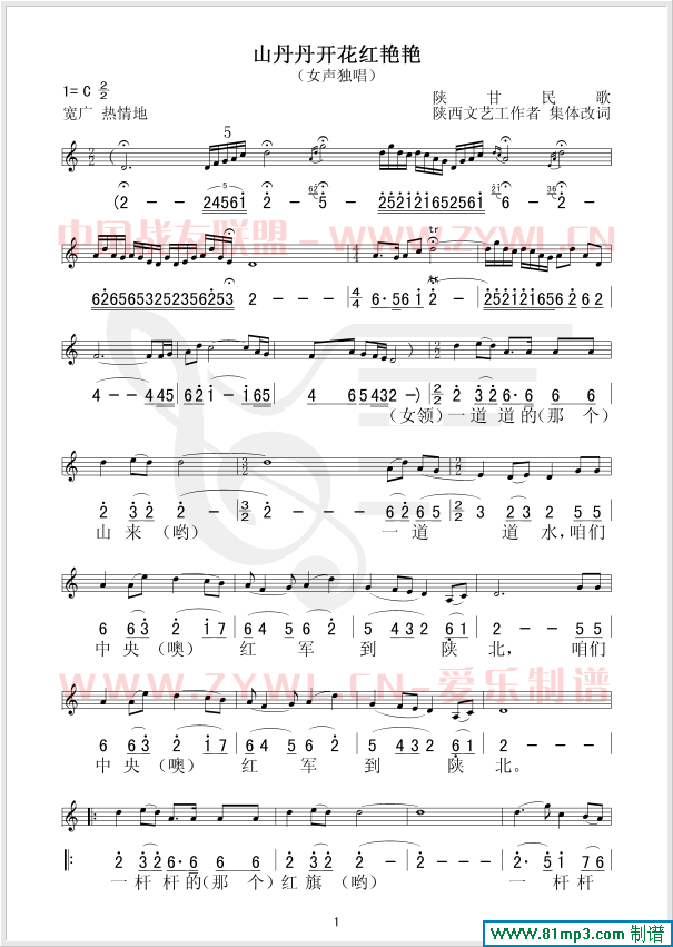 山丹丹开花红艳艳(陕甘民歌、五线谱/简谱对照)