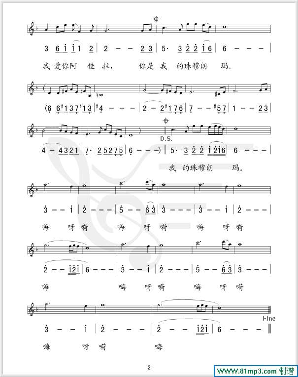 希望(《大长今》主题曲、五线谱/简谱对照)