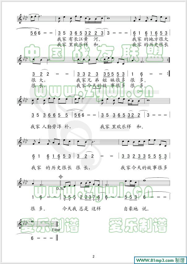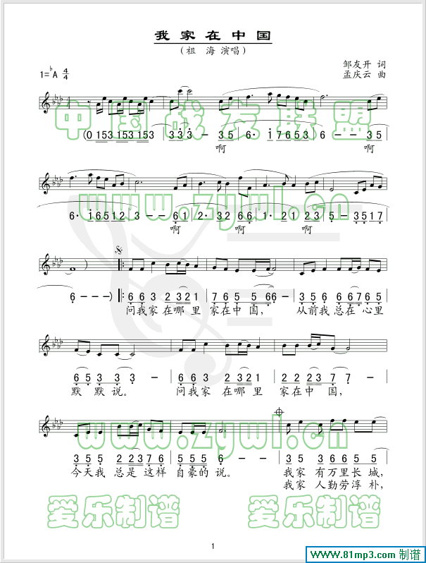 我家在中国(五线谱/简谱对照)