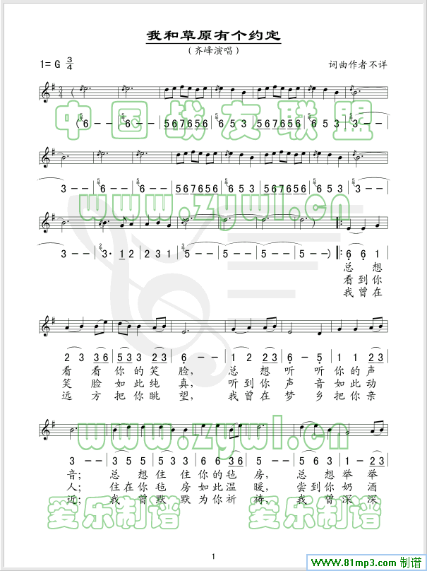 山丹丹开花红艳艳(陕甘民歌、五线谱/简谱对照)