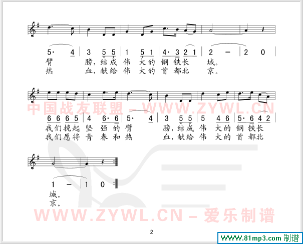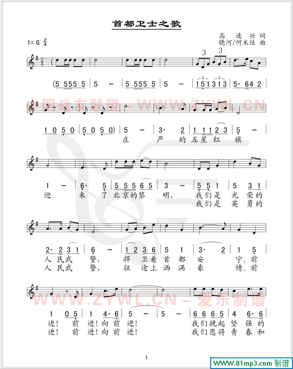 首都卫士之歌(五线谱/简谱对照)
