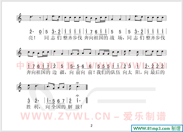妈妈军中儿郎想对您说句话(五线谱/简谱对照)