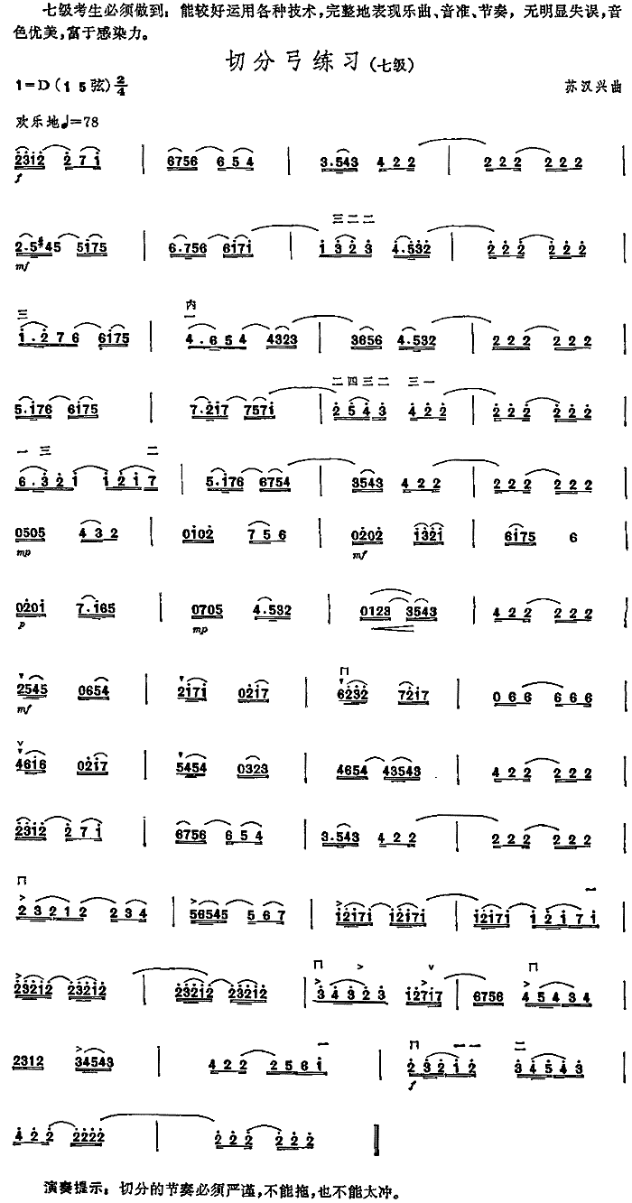 切分弓练习(中国二胡考级规定演奏曲/七级)