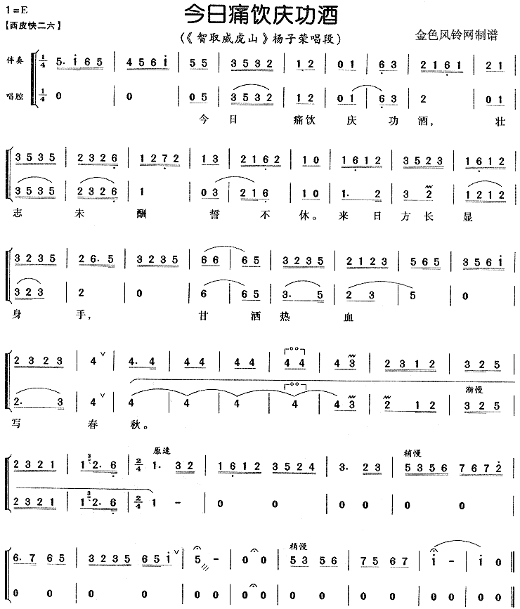今日痛饮庆功酒《智取威虎山》[戏曲曲谱]