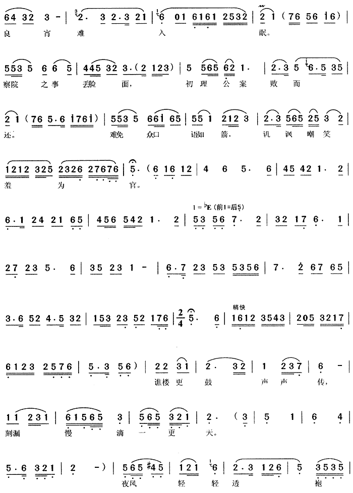 一弯新月挂半天《陈州怨》[戏曲曲谱]