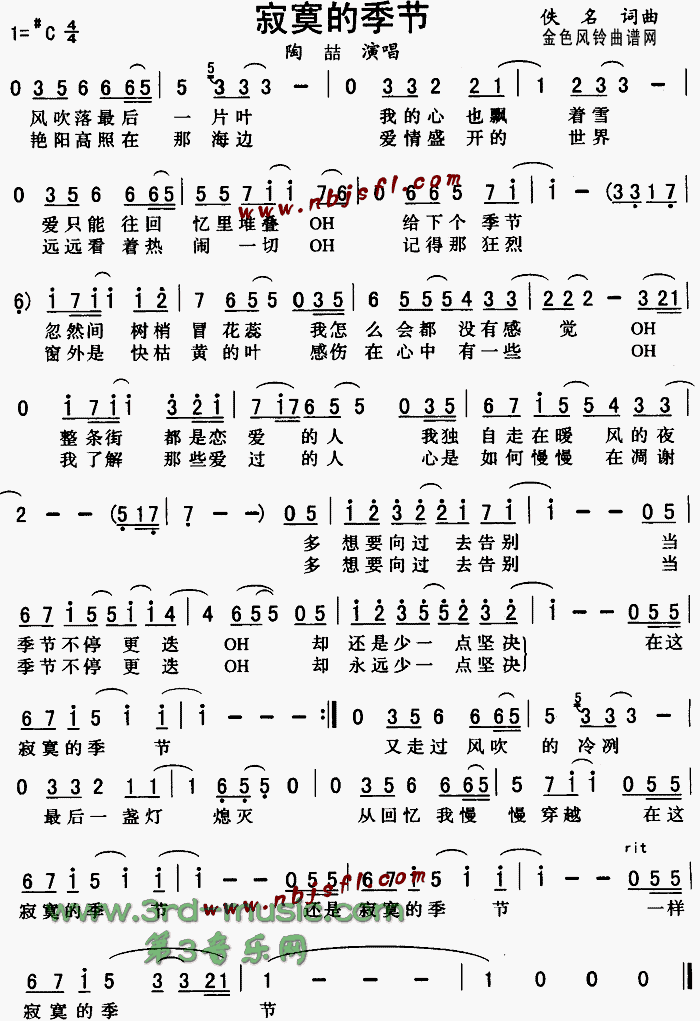 寂寞的季节[简谱]