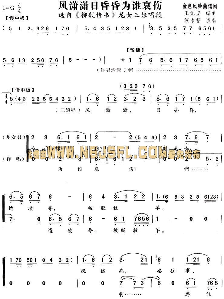 风潇潇日昏昏为谁哀伤(《柳毅传书》唱段)