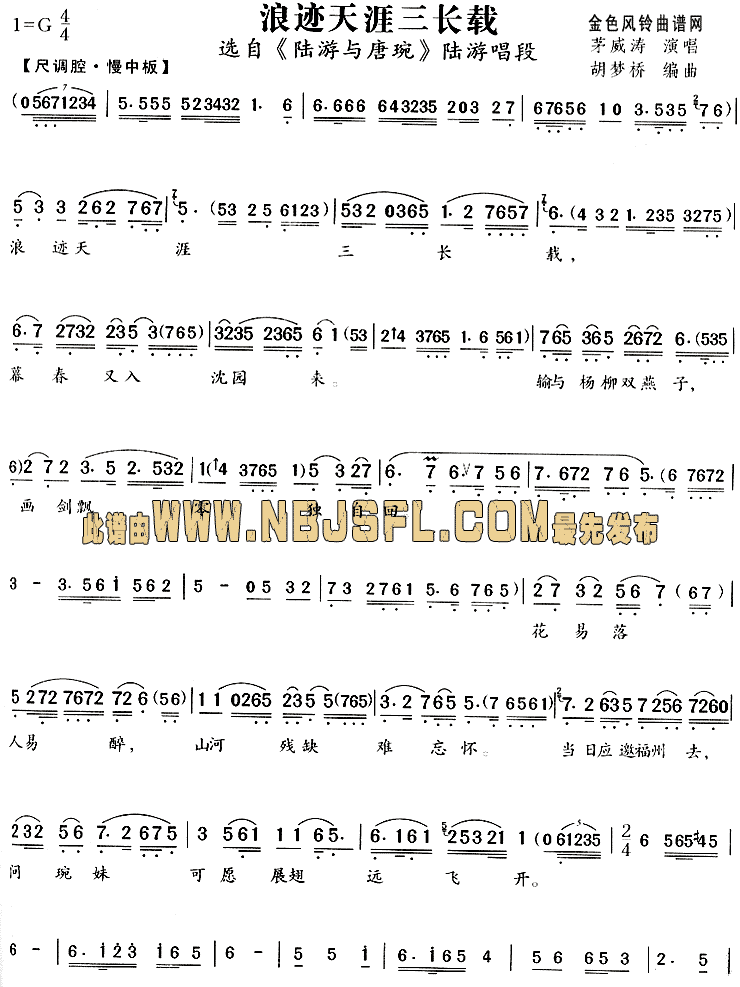 浪迹天涯三长载(《陆游与唐琬》唱段)