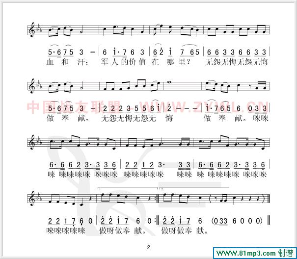 爱国奉献歌(五线谱/简谱对照)