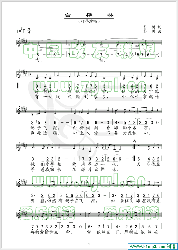 白桦林(五线谱/简谱对照)