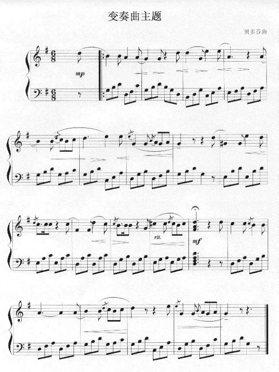 变奏曲主题(贝多芬)[钢琴曲谱]
